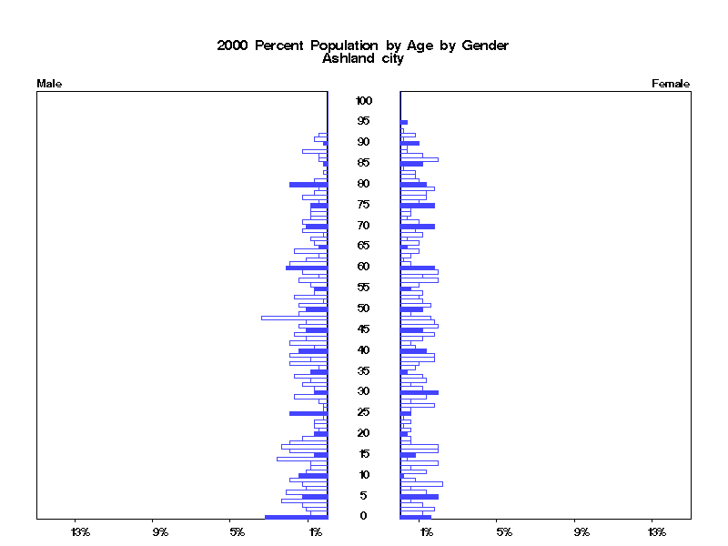 | Ashland city 2000 Population by Age by Gender | |||||