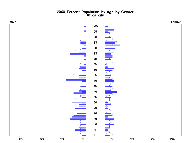 | Attica city 2000 Population by Age by Gender | |||||