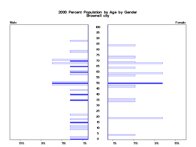 | Brownell city 2000 Population by Age by Gender | |||||