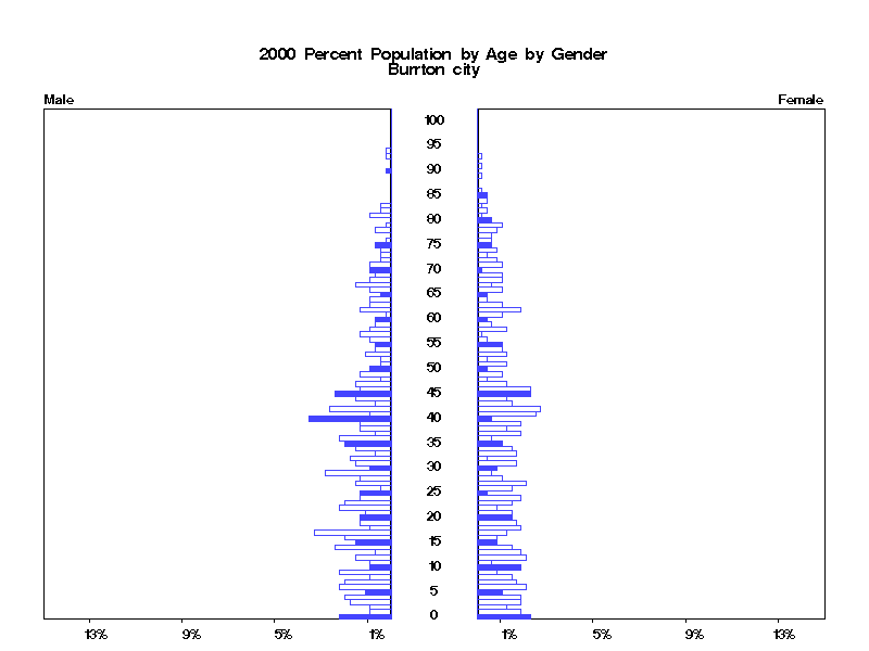 | Burrton city 2000 Population by Age by Gender | |||||