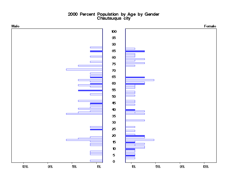 | Chautauqua city 2000 Population by Age by Gender | |||||