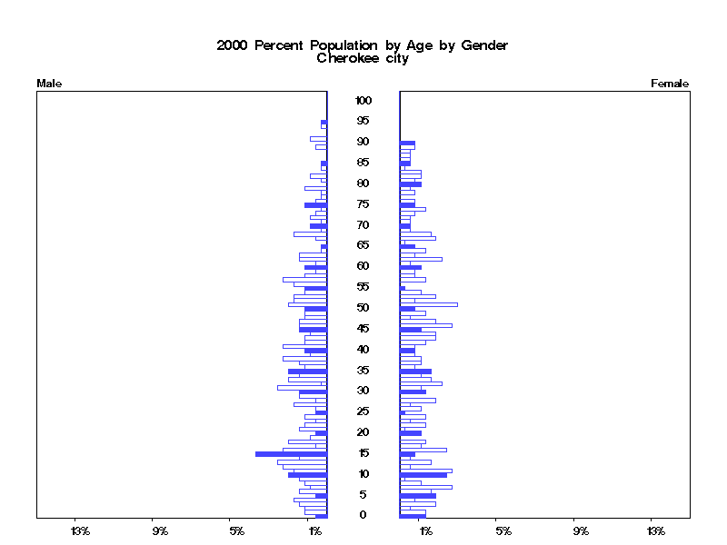 | Cherokee city 2000 Population by Age by Gender | |||||