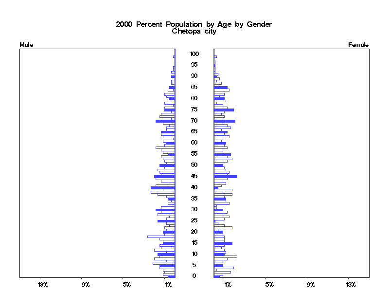 | Chetopa city 2000 Population by Age by Gender | |||||