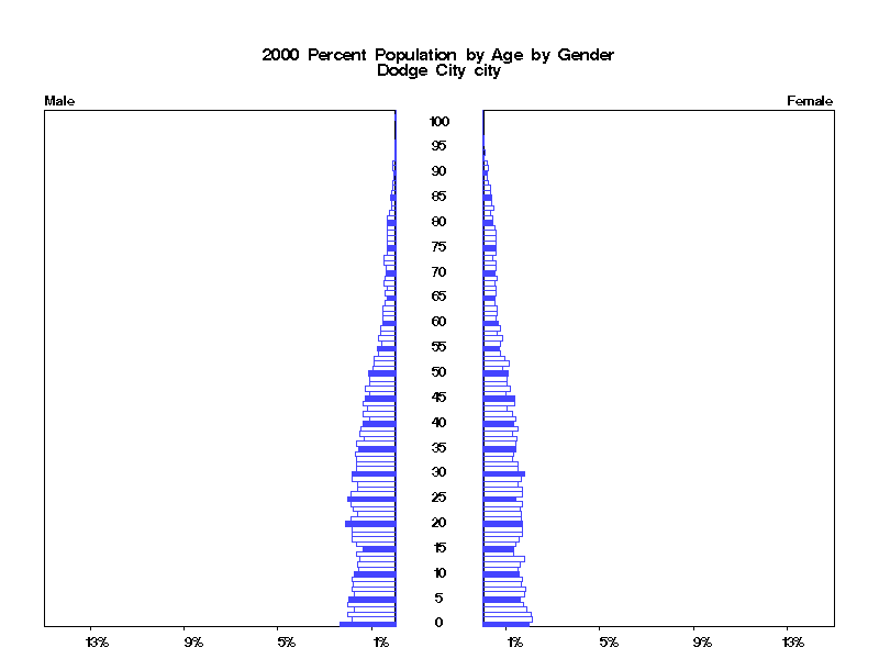 | Dodge City city 2000 Population by Age by Gender | |||||
