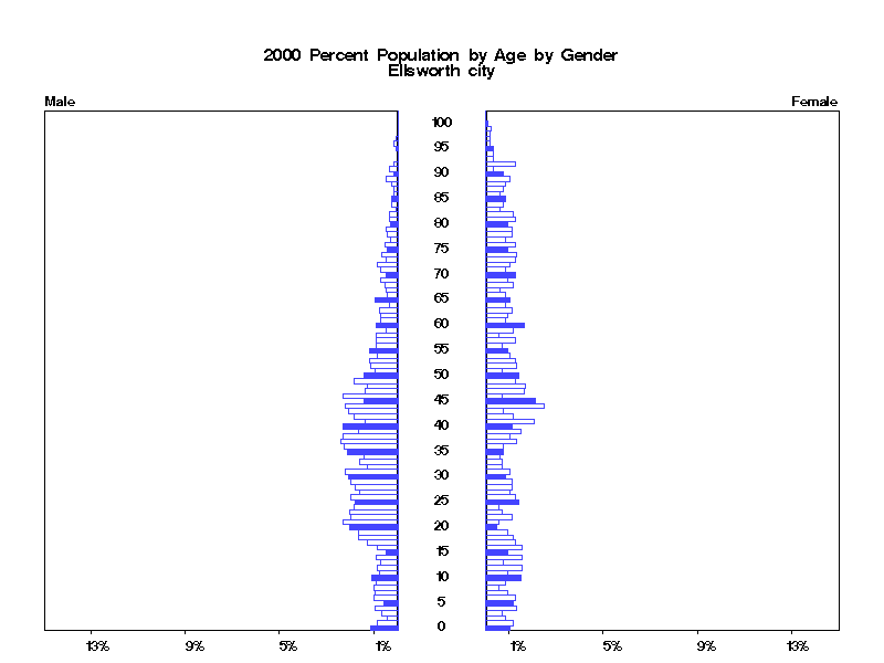 | Ellsworth city 2000 Population by Age by Gender | |||||