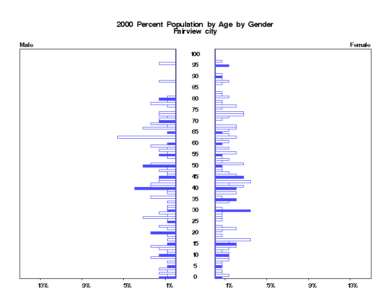 | Fairview city 2000 Population by Age by Gender | |||||