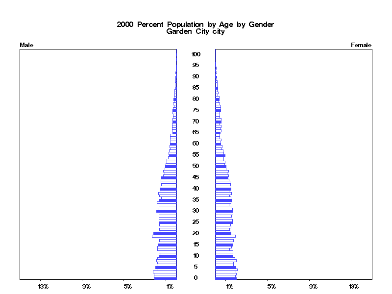 | Garden City city 2000 Population by Age by Gender | |||||