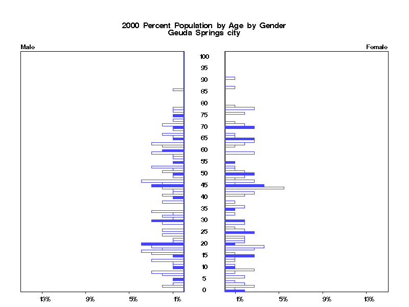 | Geuda Springs city 2000 Population by Age by Gender | |||||