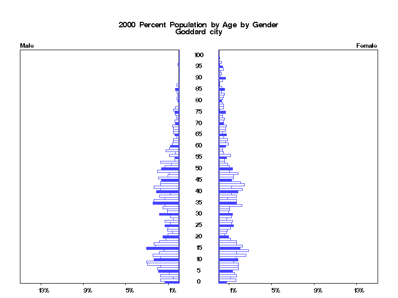 | Goddard city 2000 Population by Age by Gender | |||||