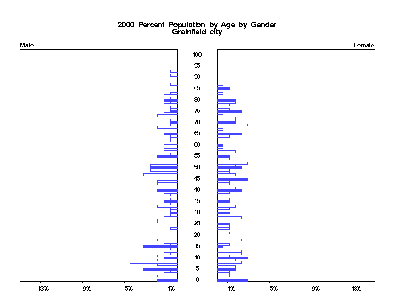 | Grainfield city 2000 Population by Age by Gender | |||||