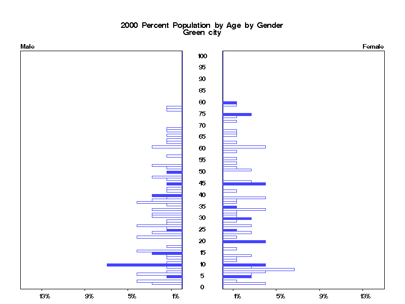 | Green city 2000 Population by Age by Gender | |||||