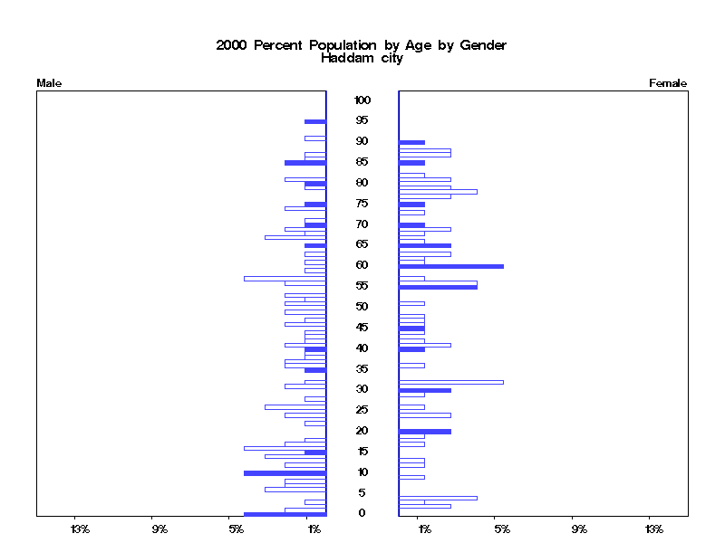 | Haddam city 2000 Population by Age by Gender | |||||