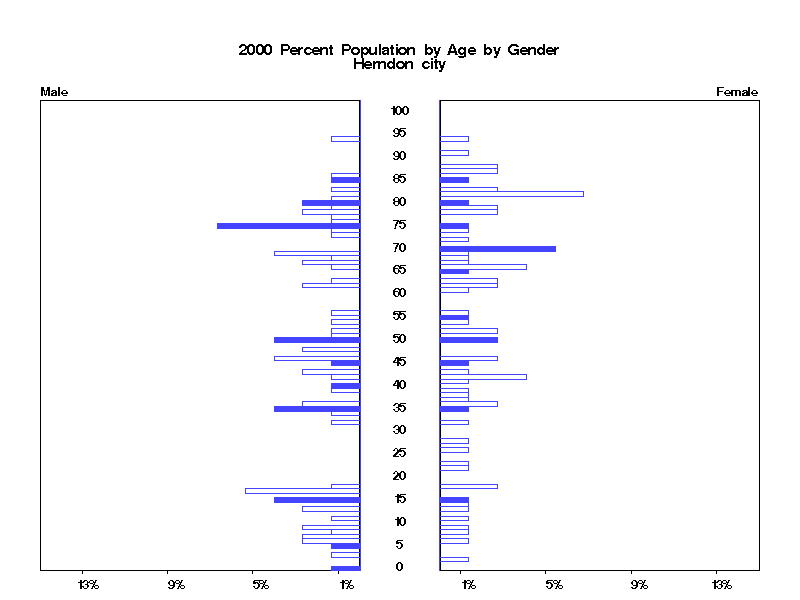 | Herndon city 2000 Population by Age by Gender | |||||