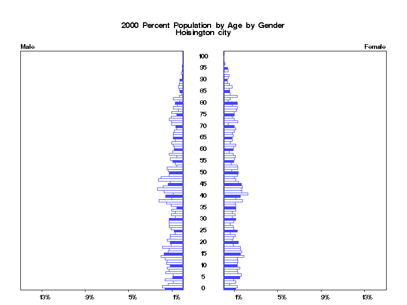 | Hoisington city 2000 Population by Age by Gender | |||||