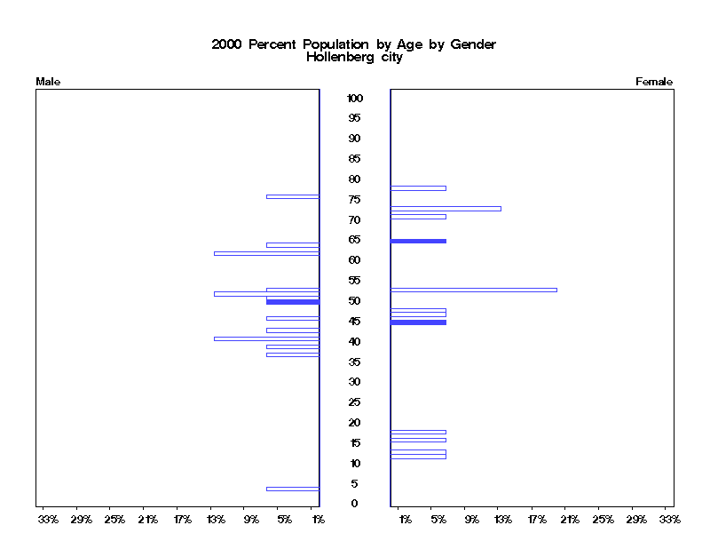 | Hollenberg city 2000 Population by Age by Gender | |||||
