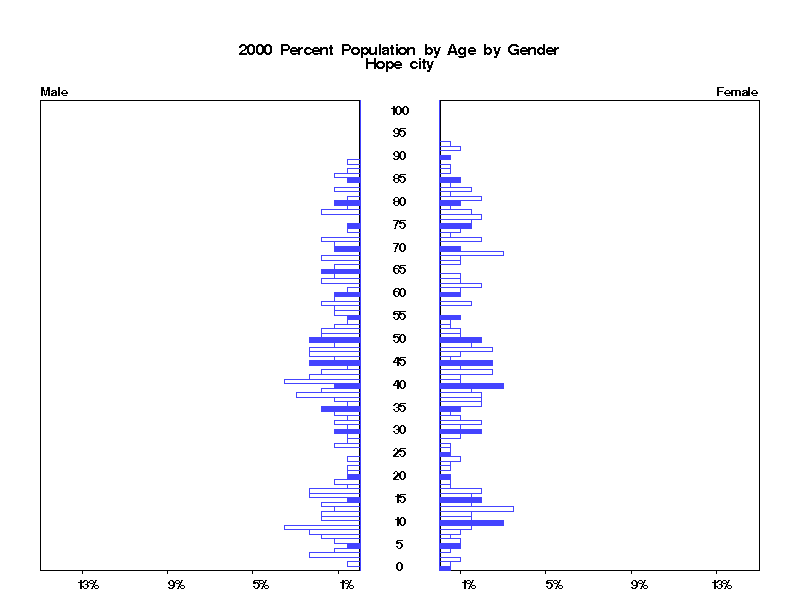 | Hope city 2000 Population by Age by Gender | |||||