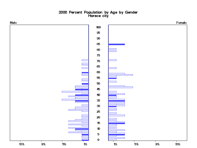 | Horace city 2000 Population by Age by Gender | |||||