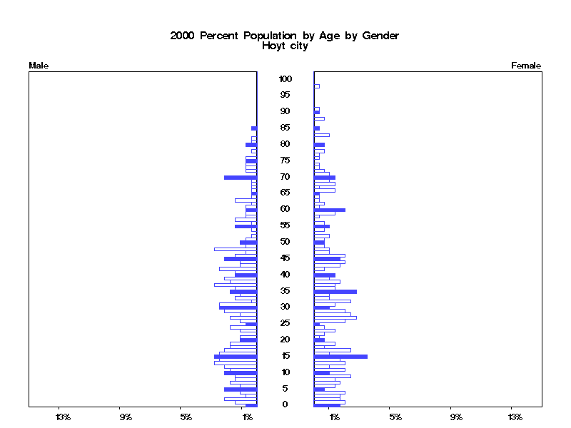 | Hoyt city 2000 Population by Age by Gender | |||||