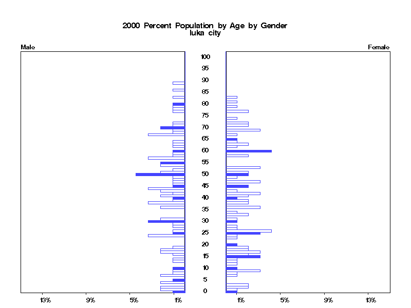 | Iuka city 2000 Population by Age by Gender | |||||