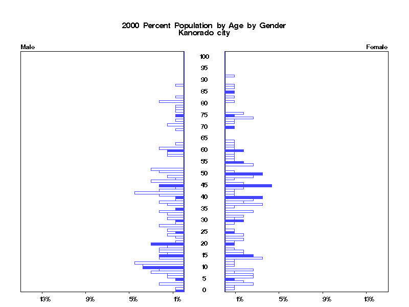 | Kanorado city 2000 Population by Age by Gender | |||||