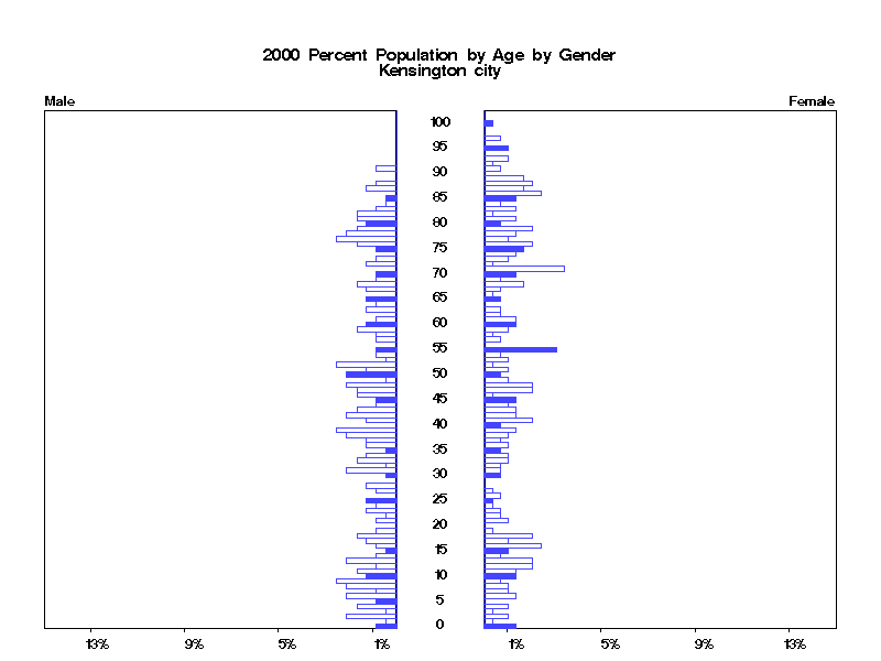 | Kensington city 2000 Population by Age by Gender | |||||