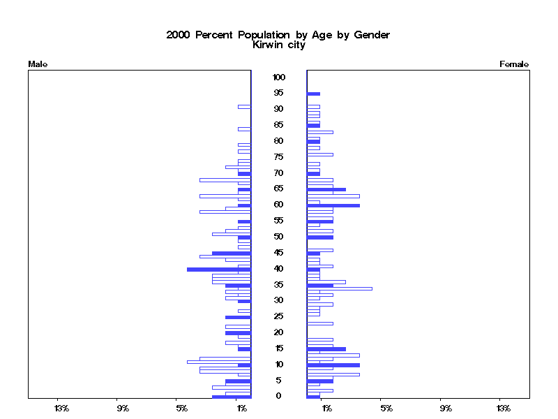 | Kirwin city 2000 Population by Age by Gender | |||||