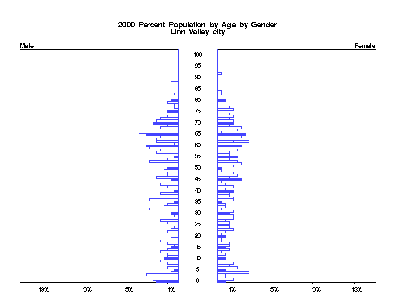 | Linn Valley city 2000 Population by Age by Gender | |||||