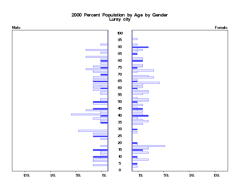 | Luray city 2000 Population by Age by Gender | |||||