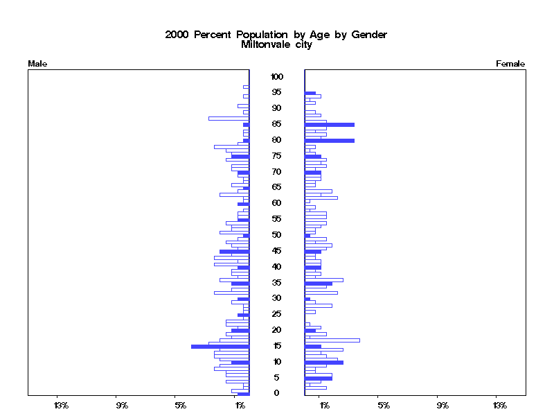 | Miltonvale city 2000 Population by Age by Gender | |||||
