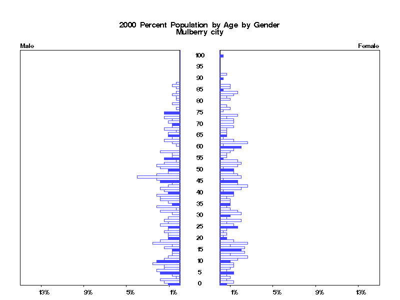 | Mulberry city 2000 Population by Age by Gender | |||||