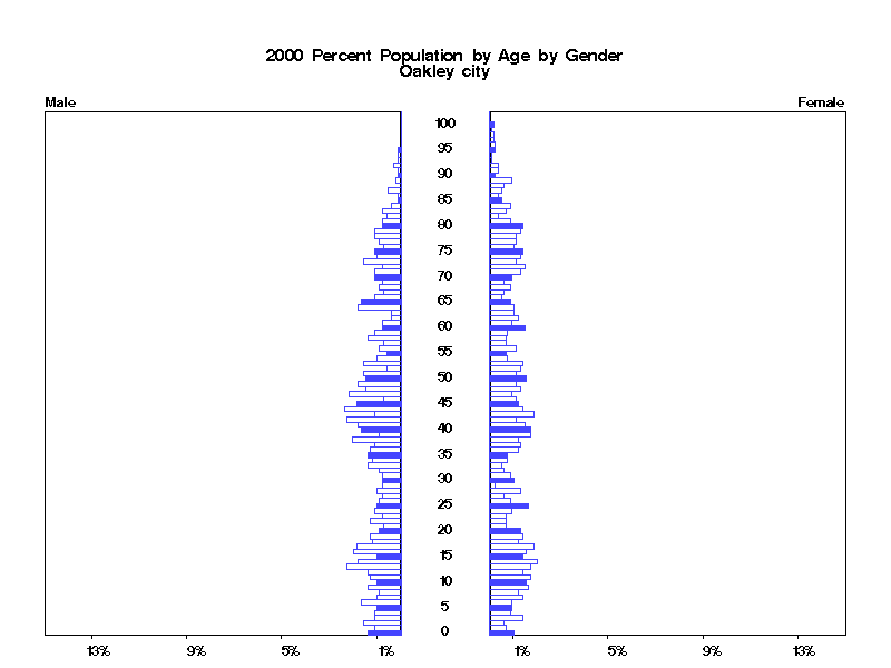 | Oakley city 2000 Population by Age by Gender | |||||