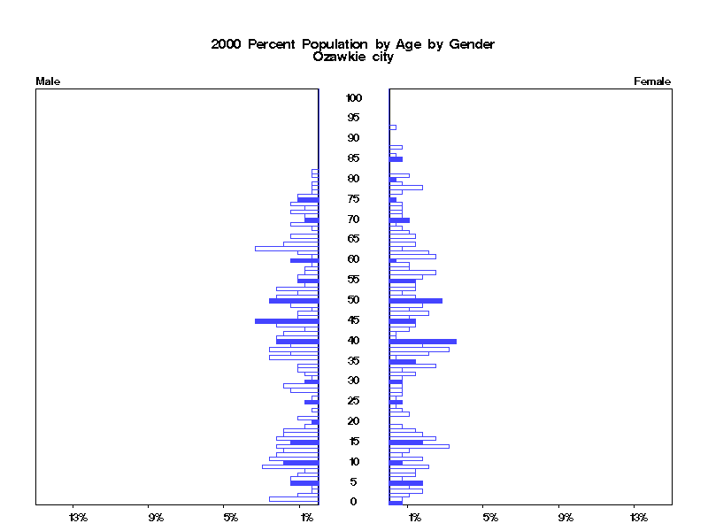 | Ozawkie city 2000 Population by Age by Gender | |||||