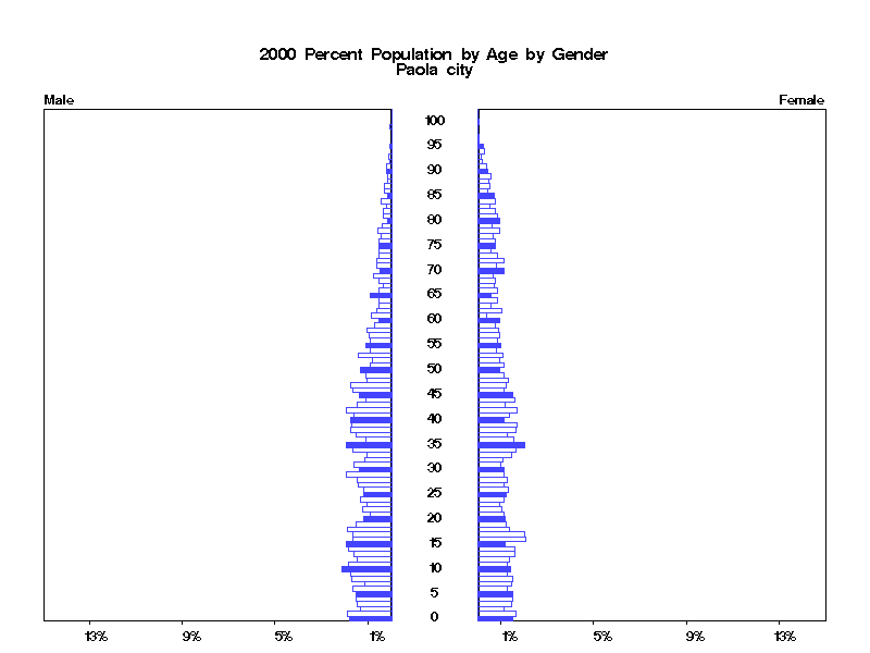 | Paola city 2000 Population by Age by Gender | |||||