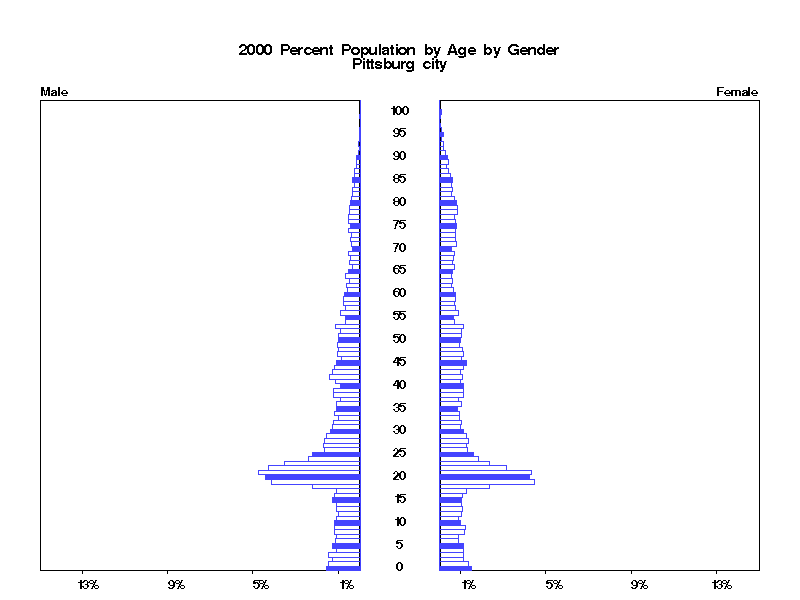 | Pittsburg city 2000 Population by Age by Gender | |||||