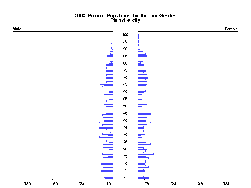 | Plainville city 2000 Population by Age by Gender | |||||