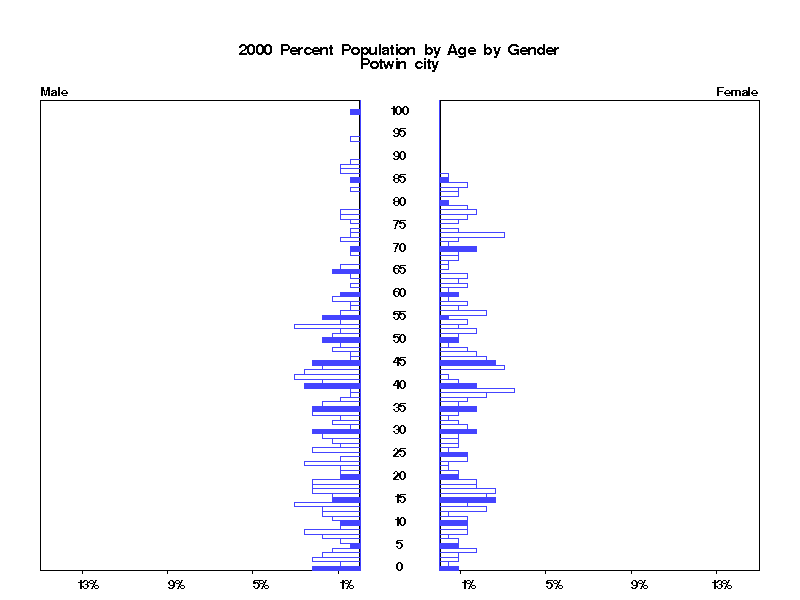 | Potwin city 2000 Population by Age by Gender | |||||