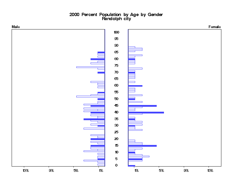 | Randolph city 2000 Population by Age by Gender | |||||