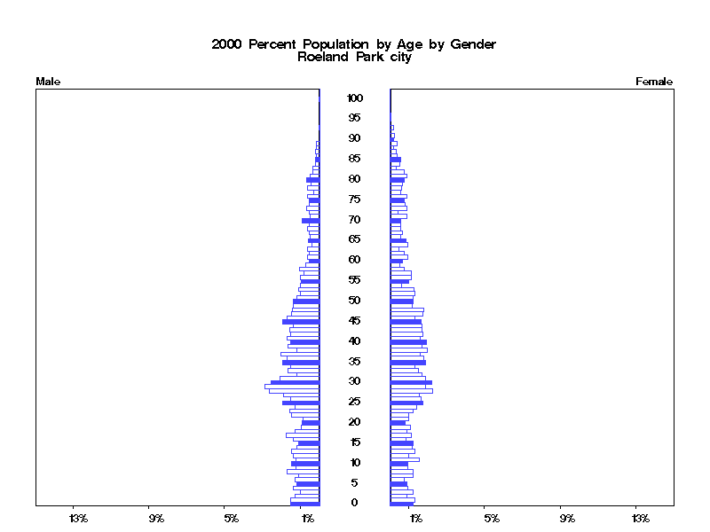 | Roeland Park city 2000 Population by Age by Gender | |||||