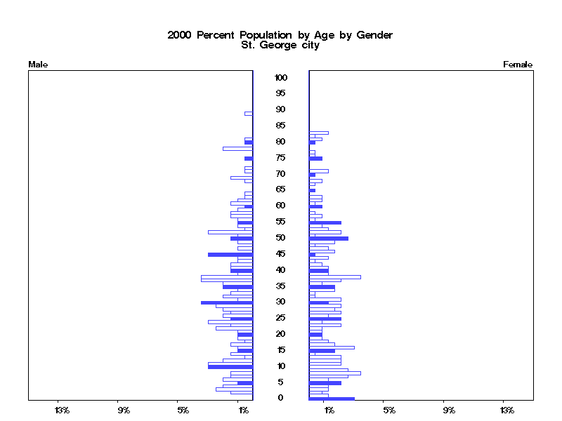 | St. George city 2000 Population by Age by Gender | |||||