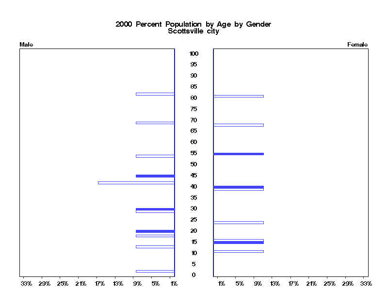 | Scottsville city 2000 Population by Age by Gender | |||||
