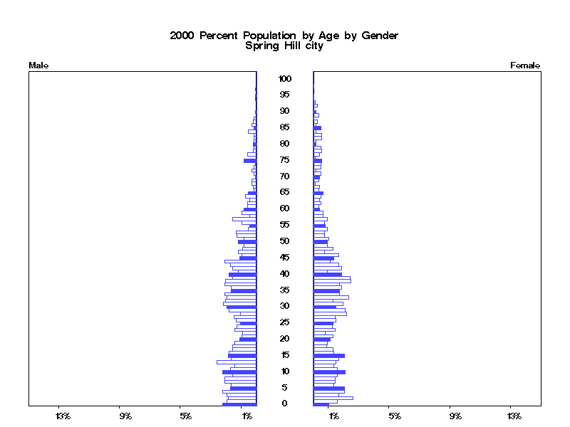 | Spring Hill city 2000 Population by Age by Gender | |||||