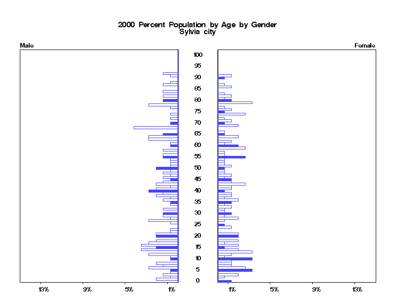 | Sylvia city 2000 Population by Age by Gender | |||||