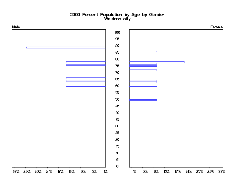 | Waldron city 2000 Population by Age by Gender | |||||