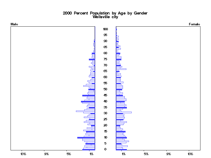 | Wellsville city 2000 Population by Age by Gender | |||||
