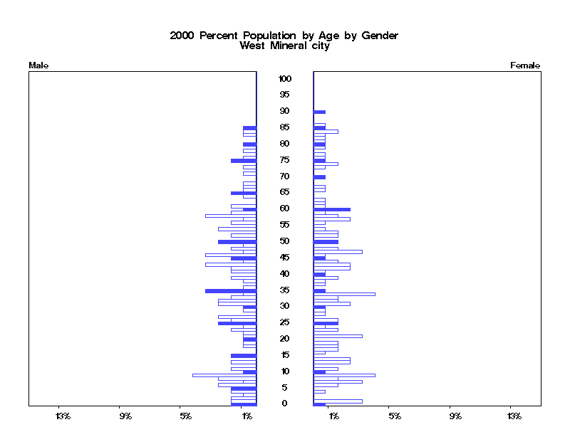 | West Mineral city 2000 Population by Age by Gender | |||||